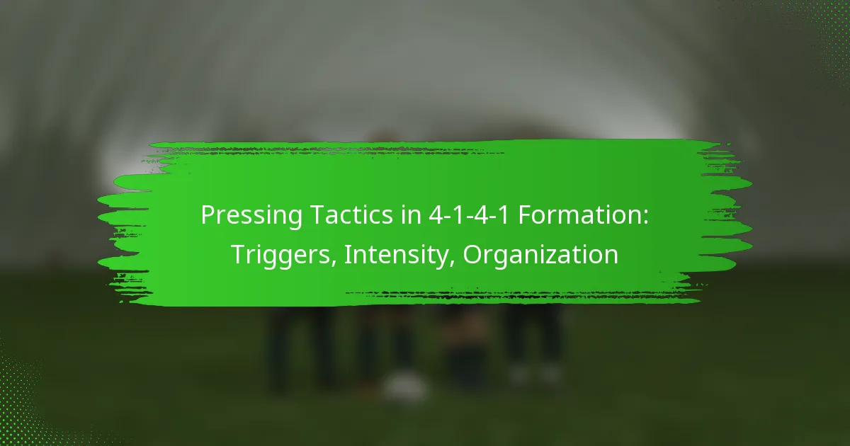The 4-1-4-1 formation offers a strategic framework for implementing effective pressing tactics, focusing on key triggers such as situational cues and player movements. By maintaining high intensity and clear communication, teams can enhance their pressing effectiveness while ensuring defensive organization. This balance is essential for applying pressure on the opponent while safeguarding against counterattacks.